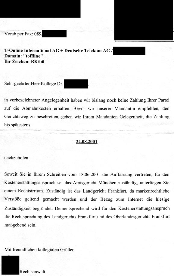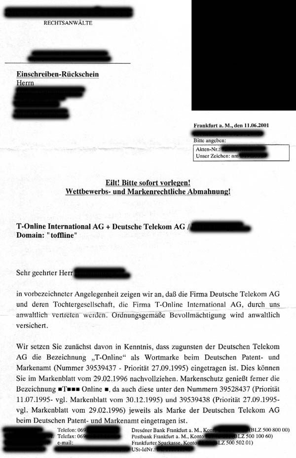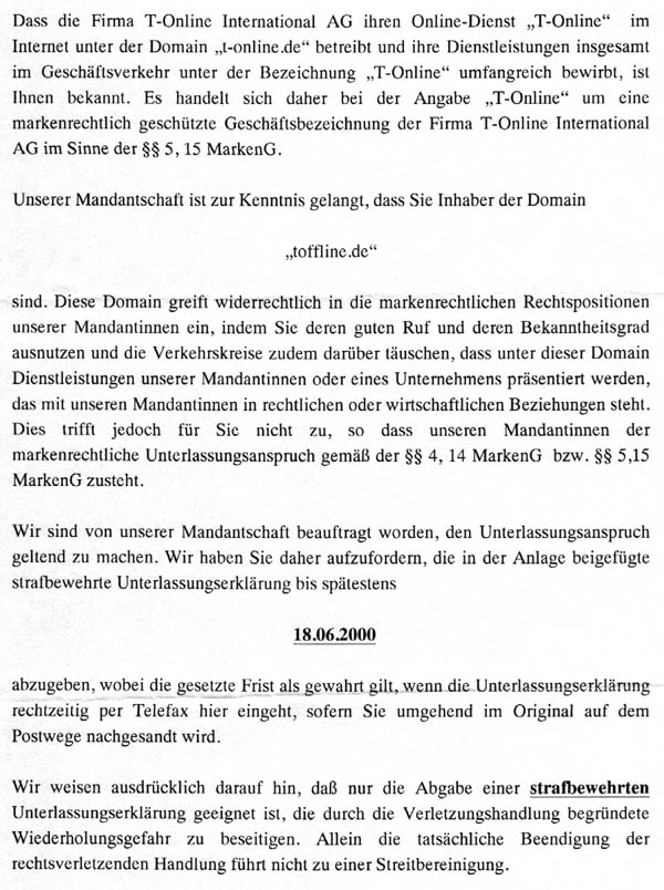 15.06.01 - Das Abmahnungs-Schreiben im Original-Wortlaut