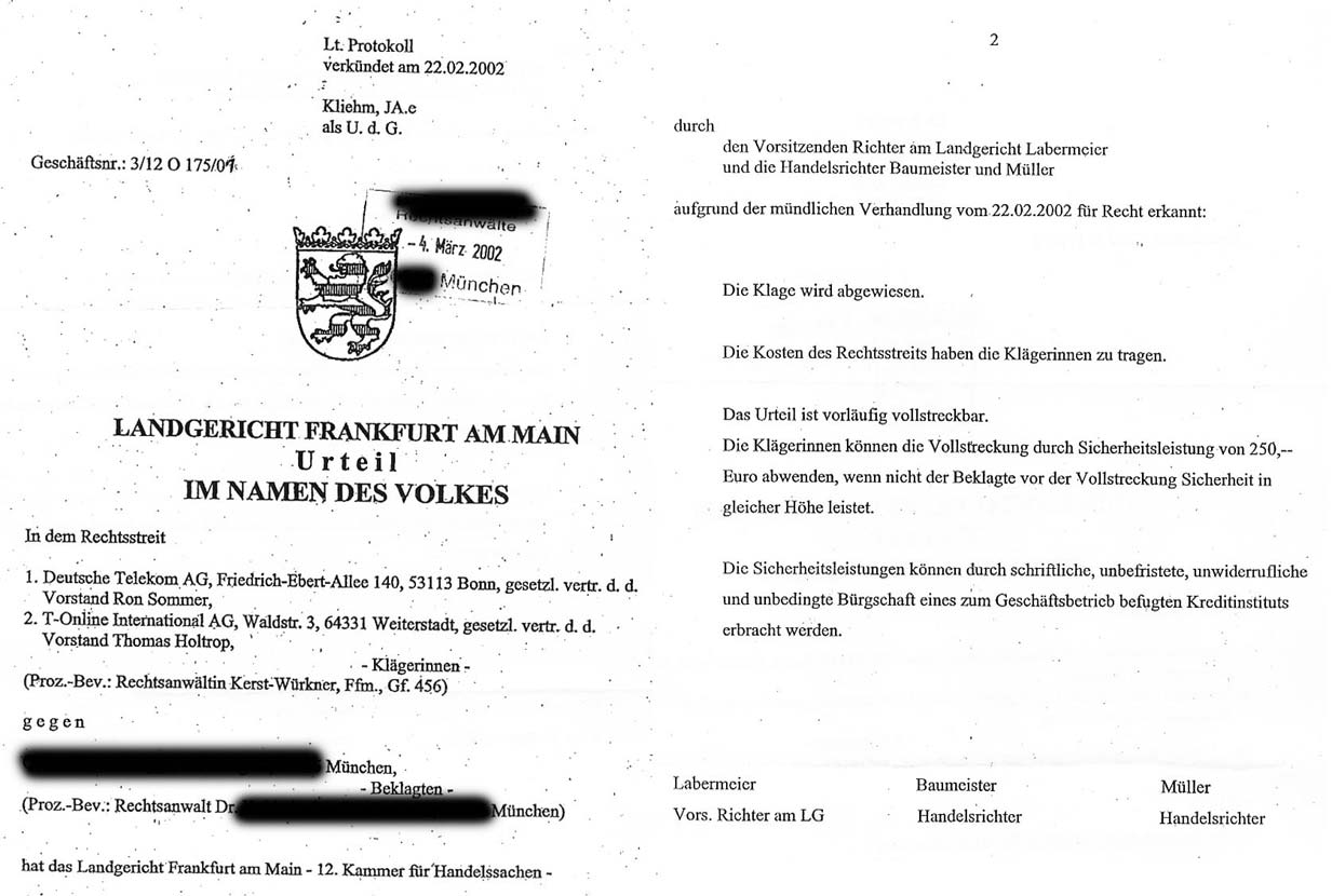 (...) das urteil vom lg frankfurt ist rechtskraeftig