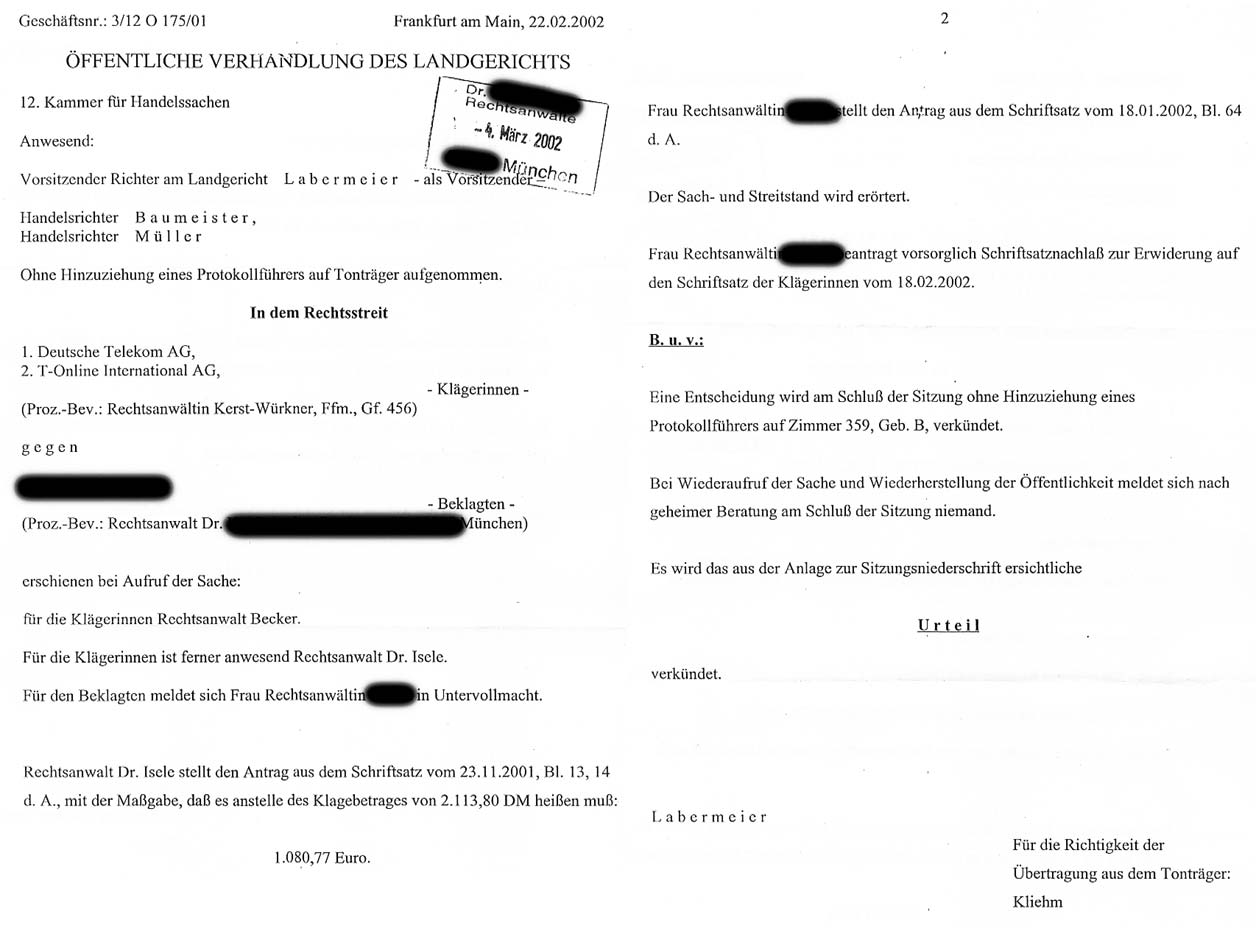 26.03.02 - Die Klage wurde (eigentlich) endgueltig abgewiesen